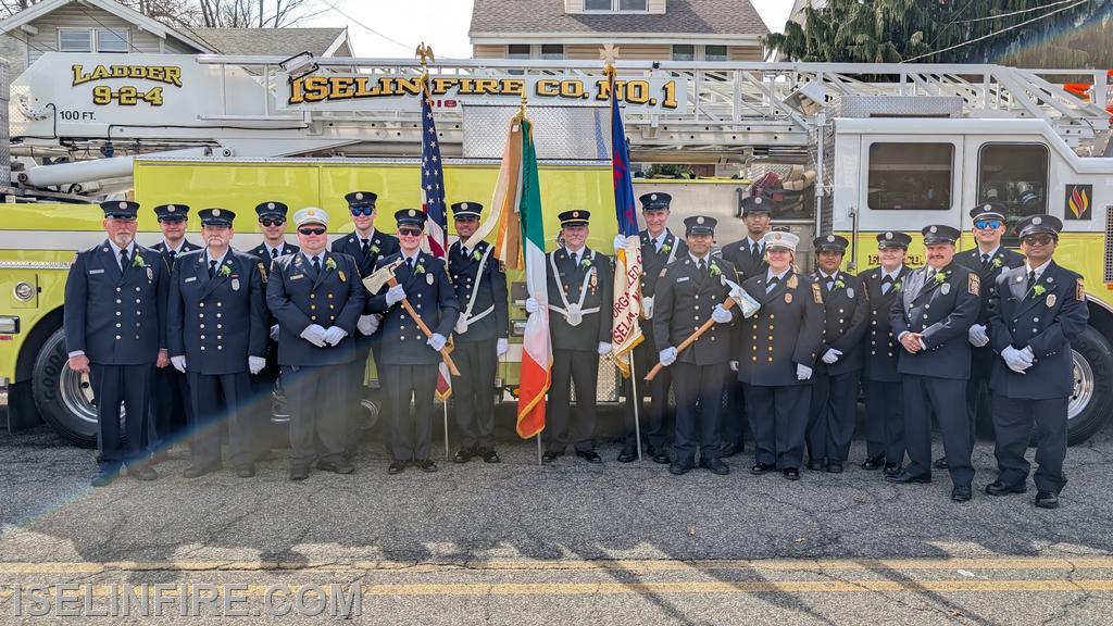 Iselin District 9 took part in the 2026 Woodbridge St. Patrick's Day parade. The department was represented by the company honor guard carrying the colors, followed by with the fire company marching in formation, Chief 9-3-1, Engine 9-5, and Ladder 9-2-4.