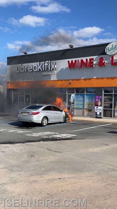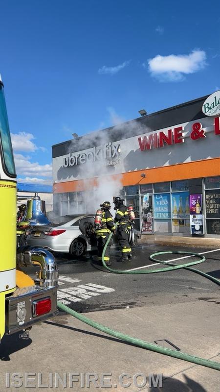 Firefighters from Iselin District 9 were dispatched to a retail parking lot off of Route 1 for a reported car fire. Upon arrival crews quickly extinguished the blaze and prevented any damage to the nearby structure. This was call number 6 of 8 during a very busy day in Iselin.